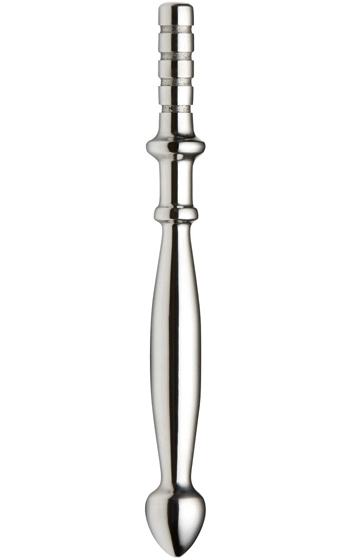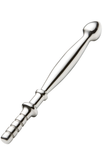 Beskrivning: Dubbel urinrörs-dilator av rostfritt stål för den verkliga finsmakaren. Det polerade och rostfria stålet garanterar enkel rengöring och en bakteriefri yta även nästa gång. Ett bra val för nybörjaren tack vare dess lilla diameter, när du blivit varm i kläderna vänder du bara på den och får en tjockare modell! Den smalare delen är ca 5 mm i diameter och penetrerar dig 2,5 cm. Den tjockare delen är 10 mm i diameter och penetrerar dig 7 cm. Tack vare olika strukturer och upphöjningar utmed hela kroppen stimuleras du från början till slut.
