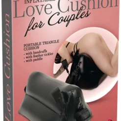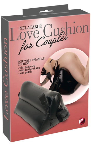 Som om inte själva kudden vore nog så medföljer även handbojor som låter dem fästas på vardera sidor om kudden med snäppkrokar. I förpackningen medföljer även en paddel för skön smisk, samt en fjäderkittlare som låter dig reta och hetsa upp din partner till max. Två reparationsplåster medföljer även om du skulle råka göra hål i kudden.