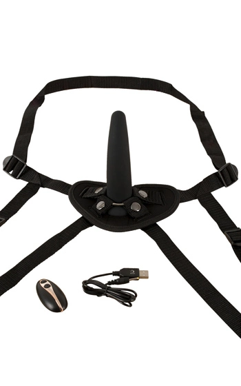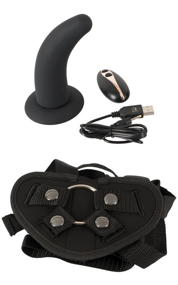 Beskrivning: Strap-on med sele, speciellt utformad för pegging! Denna modell har en mjuk, vibrerande dildo av silikon, som är böjd för att stimulera mannens prostata eller kvinnans G-punkt under sex. Trådlös fjärrkontroll medföljer som låter dig utforska sju olika vibrationsprogram hos den penetrerande dildon. Dildon är urtagbar och kan självklart även användas separat utan selen.